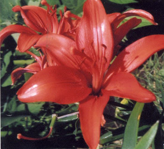 Из всего этого многообразия мне больше всего импонируют азиатские лилии и их махровые разновидности. Они пластичны, удивительно нетребовательны к почве, уходу и условиям произрастания. Зимуют вообще на зависть всем окружающим растениям. К тому же они могут очень долго расти на одном месте и прекрасно размножаться. Посаженные луковицы с годами без особых хлопот создают очаровательные куртины, оживляя любые уголки сада. Обращённые к солнцу цветы, которые расцветают на каждом цветоносе по нескольку штук, обладают такой притягательной силой, что невозможно пройти мимо, не полюбовавшись ими. Лилии продолжительно – с начала лета, а некоторые сорта ещё и в сентябре – просто пленяют своей красотой. Это и белоснежный Леннокс с нежными лепестками и контрастными коричневыми тычинками, и карминно-красная Стаккато с однотонными лепестками и тычинками.