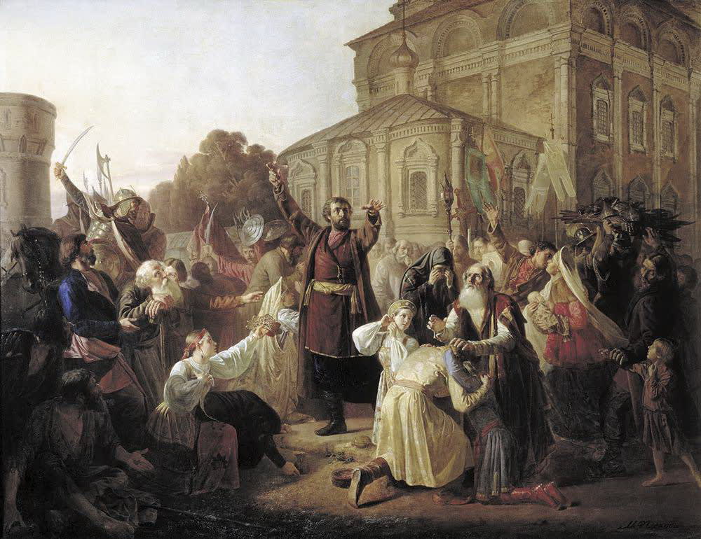 Иркутянин Михаил Иванович Песков (1834–1864) – первый сибиряк, принятый в Петербургскую академию художеств (1855 год). Восемь плодотворных студенческих лет принесли ему известность на выставках и все медали в академии: 1859-й – две вторые серебряные за этюд с натуры и картинку «Домик в Коломне» к поэме А.С. Пушкина; 1860-й – первую серебряную за картину «Ермак сговаривает атаманов волжских разбойников к походу в Сибирь»; 1861-й – вторую золотую медаль за картину «Воззвание Минина к нижегородцам в 1611 году»; 1862-й – золотую медаль «за экспрессию» в картине «Кулачный бой при Иоанне Васильевиче Грозном».