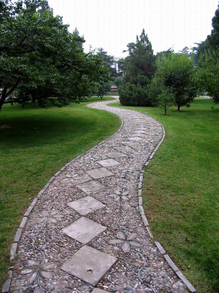 Традиционные китайские дорожки по фэн-шуй должны быть извилистыми, а не прямыми, как стрелы. Это делается для того, чтобы каждые несколько шагов взору представал новый вид. Так и сменяется обзор: то фруктовые деревья, то цветник, то каменистый садик или беседка, то пруд или укромный уголок… Если нет возможности сделать извилистую дорожку, вдоль которой тянется бордюр из цветов, то её прямую линию можно прервать высаженными кустами или деревом, чтобы скрыть то, к чему она ведёт. Но это относится к пейзажному, природному стилю, а не регулярному, французскому – со строгой геометрией, прямыми углами, квадратными клумбами. Абсолютная геометрия чужда природному ландшафту, но характерна для отдельных биологических элементов – например, для крыльев бабочек, кругов на воде, структуры листьев и прочего.