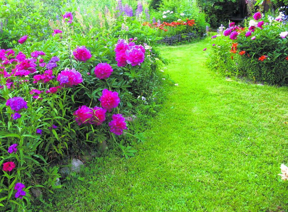 Травянистые дорожки, как и газоны, требуют тщательного ухода. Раз в неделю их надо обязательно стричь, прокалывать дёрн, весной – подкармливать и вычищать выпревшие и вымерзшие места, засевать вновь. Из собственного опыта могу сказать, что самая лучшая газонная трава – это мятлик (есть плюсы и минусы): он зеленеет, когда вокруг всё ещё серо, мягок для босых ног и особенно приятен детям. Но он быстро, самосевом, «за вашими ногами» переходит на огородную часть и в клумбы. Опять-таки он не вымерзает, но мыши могут сделать в морозы на вашей дорожке свои тропинки, которые, впрочем, за лето вновь затягиваются травкой.