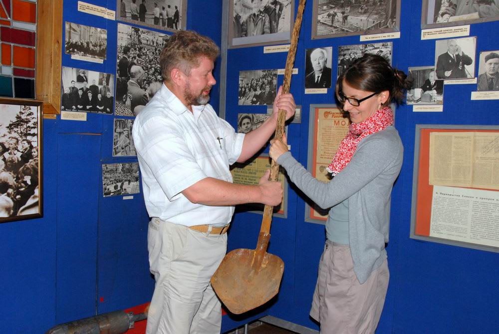 За право работать лопатой Гагарина было устроено соревнование. Только в конце 1960-х спохватились и поставили её в партком, а позже передали в музей. «Держите её крепче», – говорит Фёдоров, передавая лопату корреспонденту «СЭ». Черенок лопаты, истёртый не одной парой рук, не оставляет сомнений, что работали инструментом усердно. А первый космонавт числился плотником-бетонщиком третьего разряда даже после гибели и был ударником коммунистического труда до окончания строительства ГЭС.
