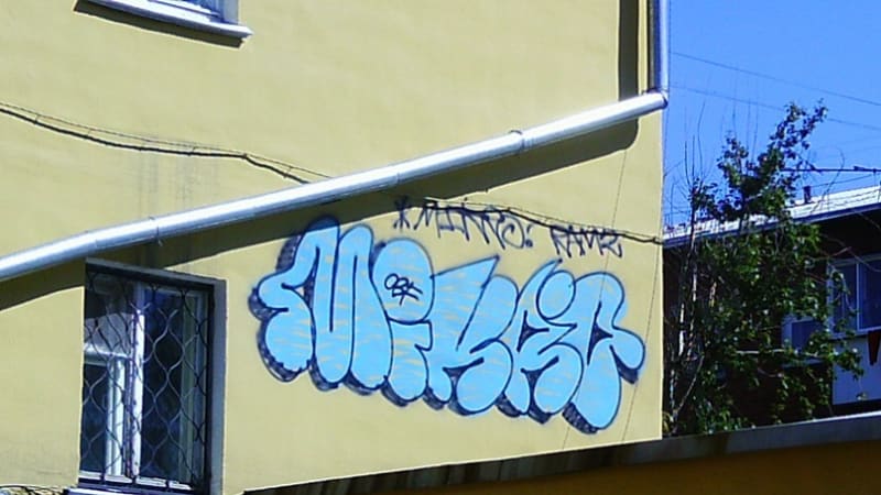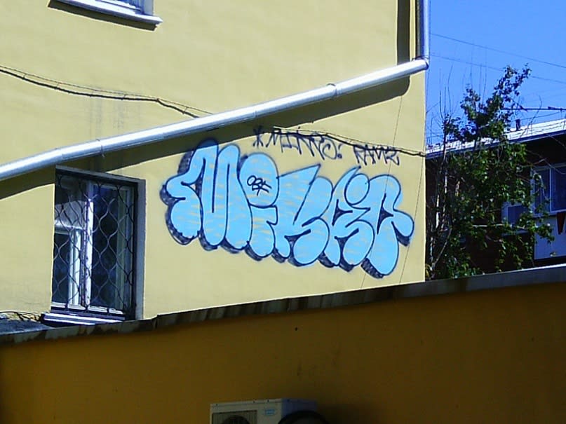 – Это было где-то году в 2004, в арке какого-то дома. Он делался без скетча, просто что в голову пришло, то и написал. По-моему, это было слово «ICЕ», и помню, что было три цвета: жёлтый, фиолетовый и розовый. Рисовал с другом, это было где-то, наверное, часов в шесть вечера. Короче говоря, ничего серьёзного, просто было интересно понажимать на баллончик, вот и всё.