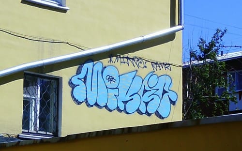 – Это был 2009 год, зимой, в центре города. Вместе – это как «давай сегодня поедем на коньках покатаемся» – «давай», то же самое, только «пошли красить» – «пошли». Нет никаких разделений обязанностей, естественно – один красит и с ним рядом другой. Или один красит тут, а второй красит там, чуть подальше. Или вообще в другом месте, но при всём этом почти всегда присутствуем оба. Есть обязательства, только когда делаем вдвоём один флоп, например бэкджамп на электричке, когда она останавливается на станции на минутку: один делает контур, другой – заливку.