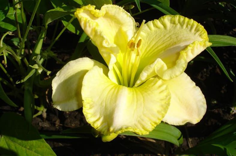 Самые красивые лилейники, на которые обычно «западают» начинающие цветоводы (многоцветные, с яркими контрастными пятнами, гофрированные или с мелкой пузырчатой каймой), – это второе поколение гибридных сортов – тетраплоиды, у которых вместо двух хромосом имеются четыре. Большинство тетраплоидных сортов, как правило, относятся не к листопадным, а к полу- или вечнозелёным лилейникам, их в нашем климате лучше на зиму укрывать лапником и сухим листом, а сверху, во избежание намокания листа, – плёнкой. Хотя срок моих наблюдений таких лилейников небольшой, всего лет пять, но напрашивается вывод, что при выращивании вечнозелёных лилейников с принудительной зимовкой они цветут не каждый год, вероятно, не совпадает наш природный цикл смены времён года со сроками закладки цветочных почек. Следует также учесть, что тетраплоиды гораздо медленнее разрастаются, нежели листопадные лилейники. Так, прекрасный сорт Мунлайт Кэрис за четыре года дал всего два побега, цветонос ежегодно один по 3 – 5 цветков. Пожалуй, исключением из всех мною опробованных тетраплоидных сортов стали пока три: Олл Американ Тайгер (Американский тигр), Дестинд ту Си (Предназначено увидеть, или Обязательно посмотри) и Олвис афтенун (Всегда после полудня). Эти сорта разрастаются хорошо, и каждый прирост на следующий год даёт цветочную стрелку, зацветают они в конце июля крупными яркими цветами, на одном цветоносе 10–12 цветков, и, что несколько необычно для лилейников, одновременно раскрываются по 2-3 цветка на цветоносе – целый букет.