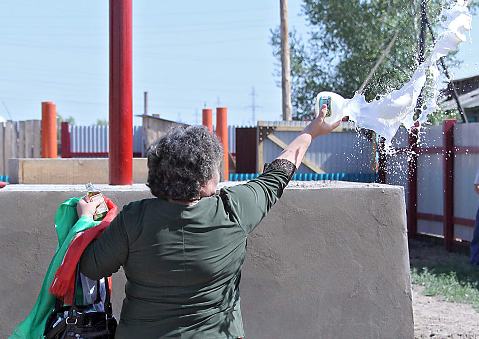 Представители народов Средней Азии тем временем отдыхали на хоздворе, равнодушно наблюдая за молебном раскосыми глазами. Открытие дацана оторвало их от строительных работ. Оказалось, бригада из Узбекистана, работает на стройках Иркутска, здесь занимается бетонными работами.