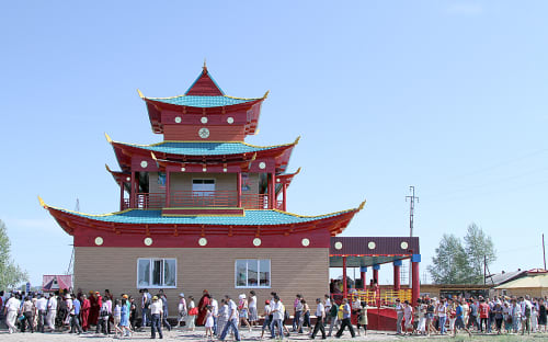 – Впервые почти за век к нам приехал с пасторским визитом глава буддистов России Пандито Хамбо-лама, – рассказал Дмитрий Бурбанов. – Его сопровождают шериту, настоятели всех дацанов Республики Бурятия, Забайкальского края и Иркутской области, сорок лам. Это высшие иерархи, поэтому молебен получился редкий по мощности и все присутствующие получили огромный заряд благодати.