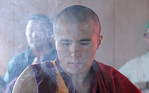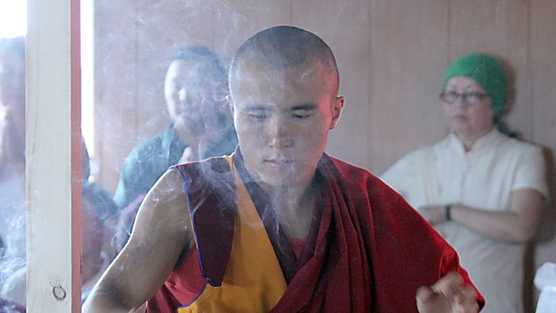 Домик, построенный из бруса Булусинского дацана, был наполнен запахом благовоний, украшен развешанными по стенами буддийскими флажками. Выходя из него, «Иркутский репортёр» столкнулся с монгольского вида молодым человеком, который строго сказал: