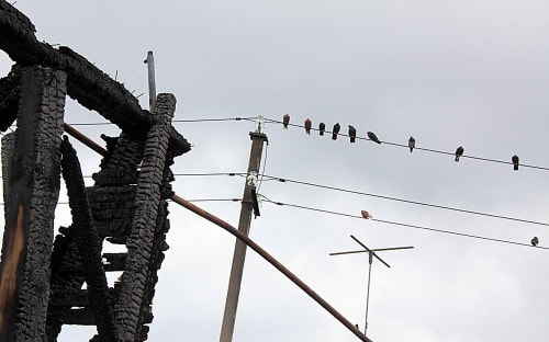 Квадрат участка выгорел ровно по диагонали – стоявшие впереди и слева дом, гараж и бойлерная сгорели полностью. Находящиеся справа и в глубине двора банька, теплица и строение с голубятней на втором этаже даже не затронуты гарью. 14-летний Вовка кормит голубей. Их осталось двадцать. Во время пожара птиц заперли в голубятне, чтобы не вылетели и не обожгли крылья. Они выжили. Пятнадцать племенных маточных голубей, привезённых хозяином из Германии, Украины и Казахстана, сгорели заживо, запертые в голубятне над гаражом.