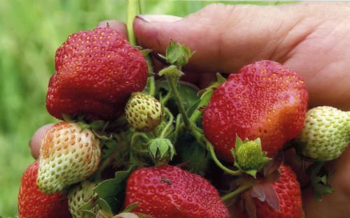 Свой вклад в феерию приятных ощущений лета внесли и земклуники. Необычно крупной нынче была ягода у мелкоплодной земклуники сорта Цукат Ананасный (до 15 г). Среди крупных сортов по-прежнему лидирует Кокинская отборная (вес отдельных ягод до 40 г и более). Замечено, что урожайность с одного куста заметно не меняется, а усообразование, начиная с третьего года плодоношения, резко падает.