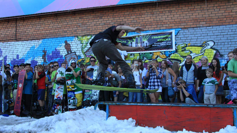 Анонс фестиваля, появившийся в местных СМИ, заинтересовал не только сноубордистов, но и рядовых граждан, о джиббинге не знающих даже понаслышке. «Это куда снег-то привозили? И зачем?» – «А, это молодёжь развлекалась!» Ледяные осадки в августе привлекли внимание масс, так что подобный обмен репликами можно было услышать и в далёких от скейт-парка очередях и маршрутках. Заявленное на пять часов дня мероприятие началось почти вовремя. У длинной кирпичной стены, украшенной граффити и освободившейся для обзора после сноса знаменитого «дома на ногах», расположились звуковая аппаратура и снаряжение участников. Диджей и ведущие развлекали собравшуюся публику. До начала мероприятия она состояла сплошь из друзей и подружек сноубордистов, но с приездом снега подтянулись и непосвящённые зрители.