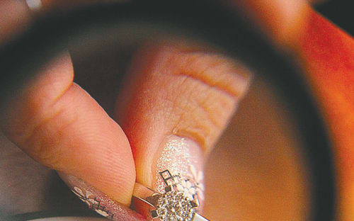 – Некоторые камни по своим минералогическим особенностям притягивают жир – в основном это касается топазов и бриллиантов. Раньше, кстати, так проверяли подлинность драгоценных камней: капали на поверхность подсолнечным маслом, и на драгоценности оно оставалось на месте, прилипало, а на полированном стекле капля стекала. Это же положено в основу промышленной добычи алмазов: руду при обогащении высыпают на поддоны с животным жиром и потом отмывают на каскадах воды – пустая порода смывается, а мелкие кристаллы прилипают, и их выбирают вручную. Это не значит, что мы в бриллиантах месим тесто, но мы ходим по улицам, грязь и выхлопные газы мегаполиса оседают плёночкой жира – и изделие теряет вид. Раз в полгода его нужно чистить, и одной мыльной воды тут недостаточно. Мы используем ультразвук, который выбивает мельчайшую грязь между звеньями золотой цепи.