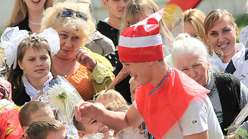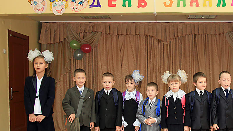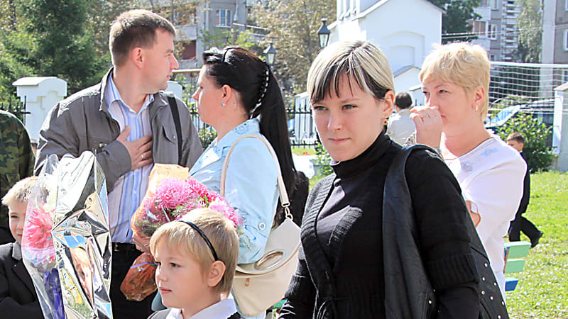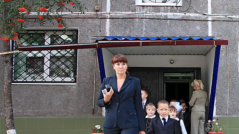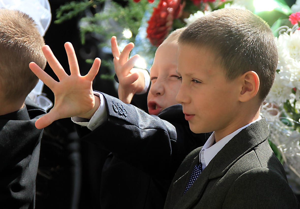 Букет доверили нести Кристине, плотной, серьёзной и неулыбчивой девочке. Букет один на всех, для своей учительницы. Из актового зала одиннадцать первоклашек выходят строем, взявшись за руки, и на улице растворяются среди таких же нарядных галдящих школяров со всего Иркутска-II. Обычные дети. Директор Валентина Анищенко замечает: