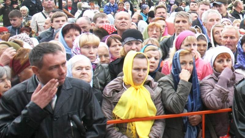 На следующий день, в субботу, иркутяне начали подходить к Знаменскому монастырю с семи часов утра, хотя прибытие Патриарха ожидалось в 9.30. Попасть на территорию храма смогли лишь счастливцы, внесённые в особый список, да ещё самые отчаянные, пришедшие ни свет ни заря. Несколько тысяч человек стояли за оградой у памятника Колчаку. На эту службу люди ехали из самых разных мест области: из Ангарска, Саянска, Свирска. Стояли на улице по нескольку часов, несмотря на то что было довольно зябко, то и дело начинал моросить дождь. И на площади, и в ограде храма были установлены большие мониторы, на которых велась трансляция службы. Посмотреть её в прямом эфире можно было по иркутским каналам и в Интернете.