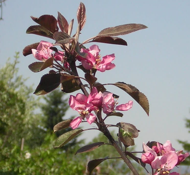 Великолепным украшением моего сада стали декоративные яблони Ола и Маковецки. Эффектные и совершенно неприхотливые растения выглядят очень привлекательно. Бутоны цвета фуксии, а затем насыщенно-розовые цветы покрывают кроны деревьев. Листья, распускаясь, окрашиваются в тёмный шоколадно-коричневый цвет. Летом листья зеленеют, а в августе некоторые из них становятся лимонно-жёлтыми, другие – красно-оранжевыми. Удивительная красота!