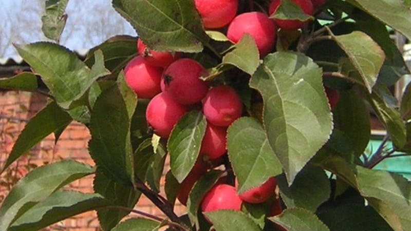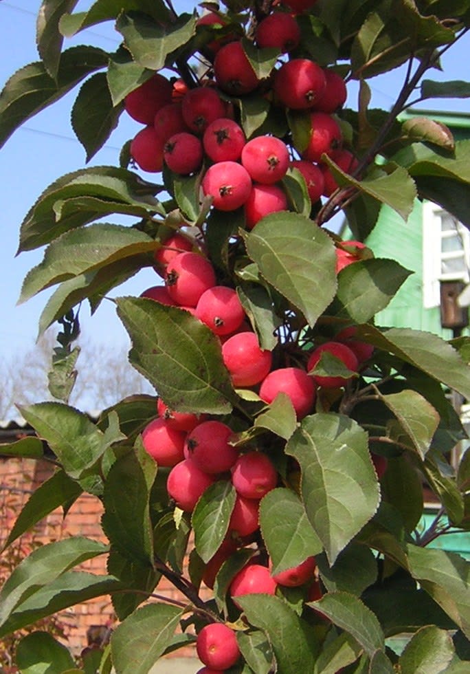 К осени деревья покрываются мелкими красными яблочками-дичками. Чтобы деревья были компактными, а цветение максимально интенсивным, я за лето дважды прищипываю концы отросших веточек. Первый раз прищипываю в середине июня, второй – в середине июля. Так дерево остаётся компактным долгие годы.
