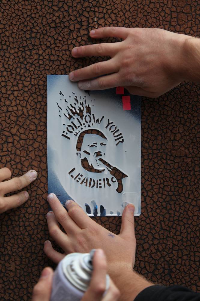 Главное отличие трафаретинга от традиционного граффити – не сделать красивый рисунок, а донести мессидж, послание, ёмко сформулированную мысль. Парни признаются, что подавляющее большинство эскизов они берут из Интернета: на сайтах «Автономного действия» есть не только эти рисунки, но и пошаговые инструкции изготовления трафаретов в стиле «распечатай, вырежи, нанеси на стену».