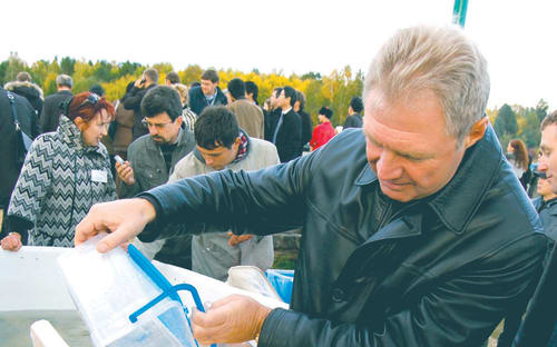 Когда модели с вениками ускакали, появились кузнецы. Сковав себе по подкове, гости пошли по традиции добывать золото. Там их встретили люди в телогрейках и шапках-ушанках. Типичные «зэки». Тюремную робу гостям БЭФа примерить почему-то не дали. А дали перчатки волшебные. «Така магнитна резинова перчатка, золото притягиват», – зацокал языком казак. Золото добывалось «цивилизованно» – сразу в красных бархатных коробочках. Виктор Басаргин, надев «золотомоечные доспехи», так увлёкся, что казаки ему три раза кричали: «А ну сымай робу!», а он всё возился в песке. «Сейчас как намоет, так все программы сразу профинансирует», – хихикали гости. «Да кончилась уже руда. Пойдёмте дорогу чёрну икру добывать», – стонал кто-то с шашкой, то ли казачий голова, то ли казачий хвост. А гости всё мыли и мыли, пока казак не затрубил в трубу. Ведь на берегу гостей уже ждали четырёхмесячные осетры в ванне. Их зачерпывали в ведёрки и бежали выпускать к желобу, по трое – сам гость и два охранника. «Обрыбили Ангару, вот и славно», – потёр руки один из гостей, отпустив приплод в реку.