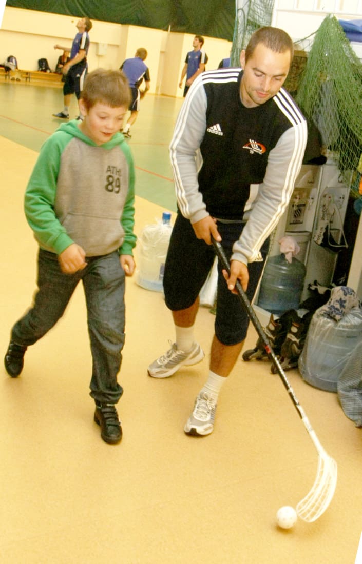 – У них специальная программа, – сухо говорит Евгений Ерахтин. И тем же тоном продолжает объяснять команде, что предстоит делать в ближайшее время. По полу разбросаны пластиковые мячи и клюшки для игры в флорбол, который служит здесь своеобразным эквивалентом хоккея, правда вместо коньков – ролики, а также скакалки, гантели и прочий инвентарь. Сегодня, к примеру, будет идти работа над скоростно-силовыми качествами. Кроме того, в распоряжении игроков – бассейн, сауна, тренажёрный зал. На происходящее в зале собравшиеся хоккеисты реагируют со всей серьёзностью. Слово «разминка» для них явно не пустой звук: перед началом тренировки все гуськом бегают по залу, подтягиваются, прыгают, растягивают коленные суставы и тянут голеностопы. После чего дружно переходят к основным упражнениям.