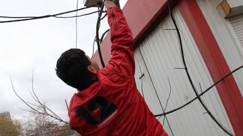 В это время на крыше соседнего киоска, в котором из-за массивной железной решётки торгуют всем – от пива и сигарет до шоколада и бутербродов, – двое рабочих пытаются отключить от электросети незаконно работающий павильон. В результате свет гаснет в обоих. Возмущённая хозяйка второй точки просит всех выйти на улицу и закрывает рольставни. Торговля окончена. Рабочие тем временем решают, как им демонтировать павильон. Для того чтобы погрузить его в эвакуатор и увезти, он слишком большой.