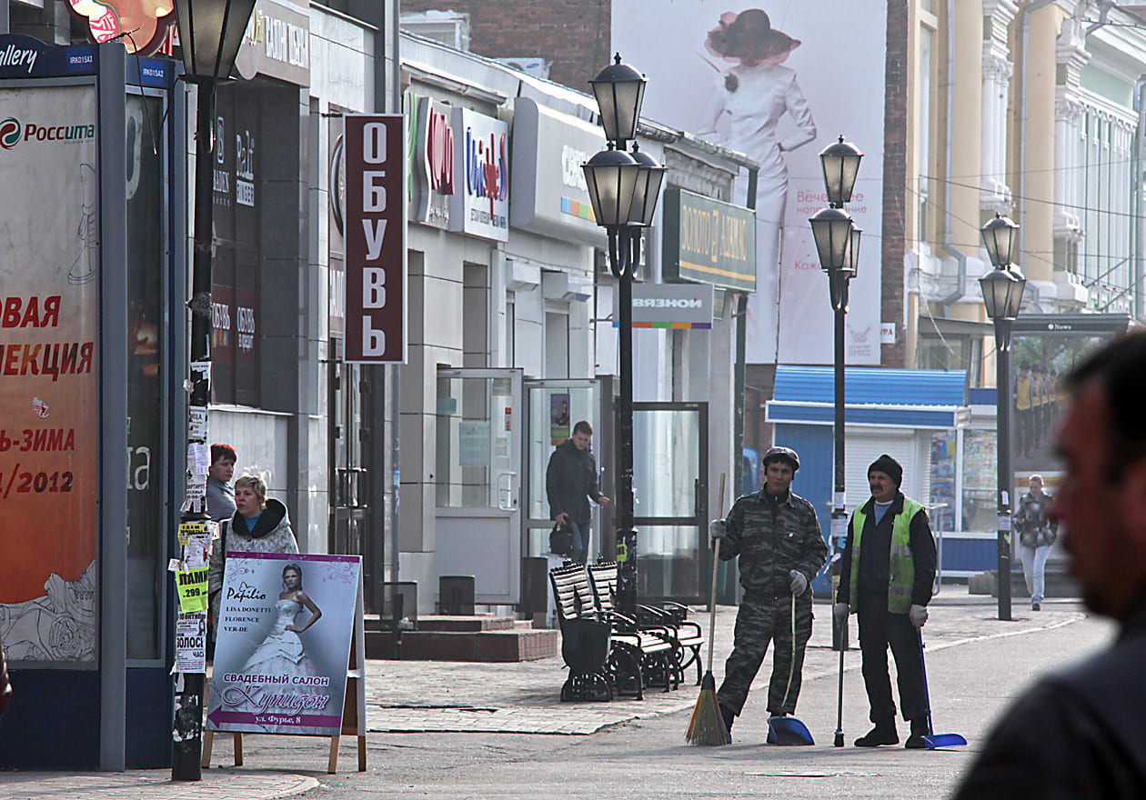 Во время прошлого рейда продавцы и предприниматели вели себя настолько агрессивно, что в этот раз за порядком вышел следить местный участковый. Однако возмутился только один предприниматель. «Ну что, господа, когда вы сделаете нам нормальные условия для рекламы?» – обратился он к представителям мэрии и, не особо дожидаясь ответа, пригрозил судом, после чего спешно скрылся в одном из магазинов. «Господин с Урицкого, 9», – представила его Наталья Бриль прессе.
