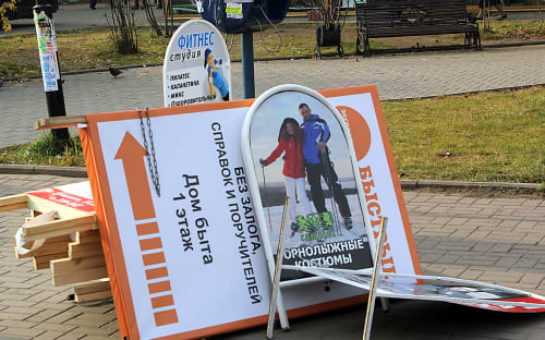 После изъятия штендеры на полгода передаются на ответственное хранение подрядчику, рассказала Наталья Бриль, который выбран по конкурсу для исполнения муниципального контракта. В течение этих шести месяцев хозяева могут вернуть рекламные конструкции, оплатив расходы на демонтаж (370 рублей за один штендер) и штраф в размере до 80 тыс. рублей. Впрочем, пока нельзя сказать, что штрафы за рекламу сильно пополнили городскую казну. «За штендерами обращались человек пять, но к административной ответственности пока никто не привлечён», – констатирует представитель отдела наружной рекламы. Собственники попросту отказываются признавать себя хозяевами «раскладушек» и ставить свою подпись под протоколом – им проще купить новую, чем платить до 80 тысяч за старую. Более эффективных мер пока не придумано, говорит Бриль. «Борьба ведётся с 2006 года, сколько отдел существует», – добавляет она.
