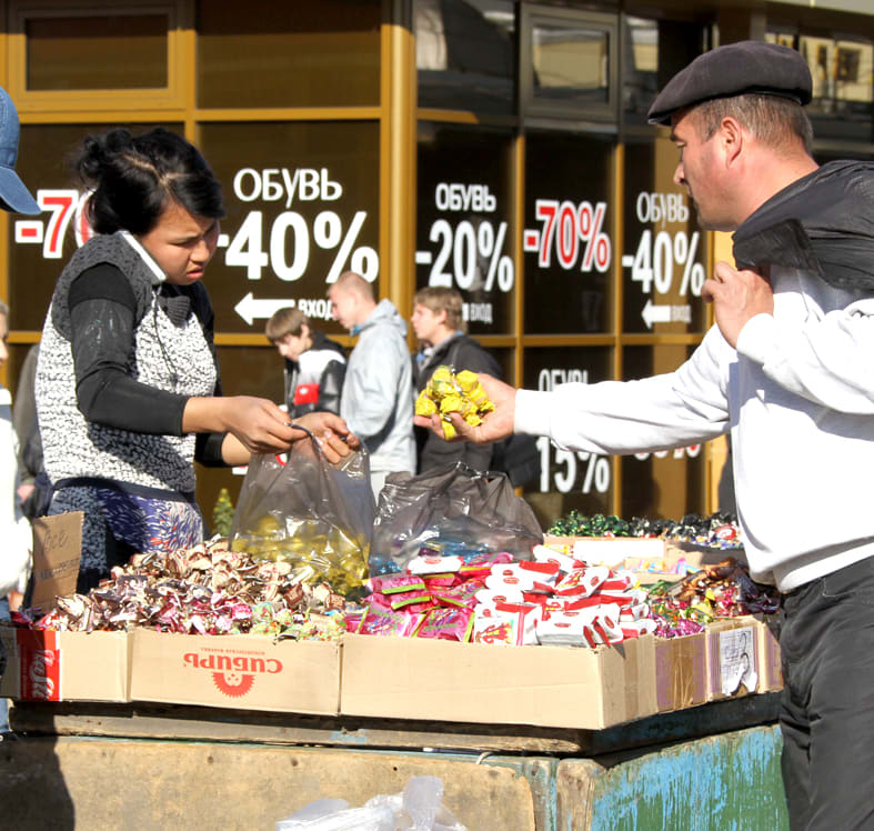 На улицах Иркутска настоящая конфетная эпидемия. Прохожим предлагают купить любой сорт конфет по очень низким ценам. На кондитерские изделия у продавцов никаких сертификатов и накладных нет. Все продукты хранятся здесь же, под открытым небом. Естественно, что перепады температур и выхлопные газы автомобилей сказываются на качестве не лучшим образом.