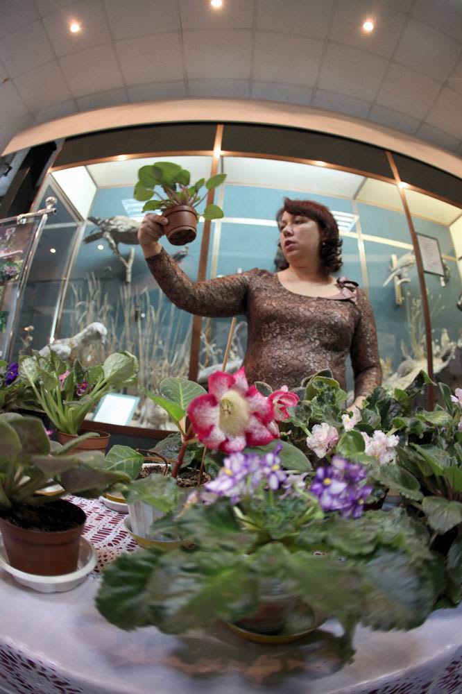 Его мама рассказывала: совсем маленький, идёт в гости и всегда возвращается с листочком. А в восемь лет мама принесла с работы несколько листиков фиалок, и сын заболел этими цветами. На выставке не менее тысячи фиалок. «Я сама принесла только 210 сортов деток», – говорит коллекционер фиалок Лариса Церунян. Сорта называют самыми причудливыми именами. Есть, к примеру, сорт  Бляха-муха известного коллекционера фиалок, ныне покойного, Бориса Макуни. Он же назвал другой сорт Никому не отдам. Часто фиалку называют просто по первому впечатлению, какое она произвела на человека, увидевшего цветение. У Андрея Щербакова были сорта 2000 (Миллениум), Аманда Лир, Голубая луна, Продавец воздуха и Тигрёнок. А ещё Валерка – в честь друга.