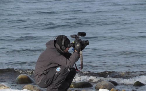 В Байкальск группа заехала, похоже, не совсем уж случайно. Здесь, на берегу участка всемирного природного наследия, журналисты увидели конфликт, столкновение интересов различных слоёв российского общества, представляющих официальное государство, частный бизнес, общественные, неправительственные организации и местное население. Но, выйдя на берег, французы про политику, похоже, забыли. Дымовых труб комбината и ТЭЦ отсюда не видно. Лёгкий ветерок отгонял запахи куда-то в горы. У озера – идиллия. Телевизионщики с удовольствием снимали набегающие на белый снег прозрачные волны озера. Молодую маму с детской коляской у самой воды. Синее небо над спокойным Байкалом и чаек, задержавшихся с отлётом в тёплые края. Группу гуляющих подруг-пенсионерок. Тут же радостно фотографировались сами. Но скоро ветер сменил направление и прозрачный воздух стал наполняться чуть ощутимыми ароматами целлюлозного производства.