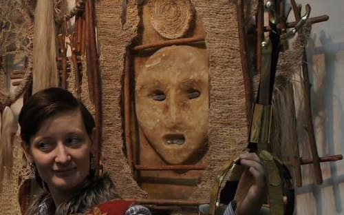 Мы с волнением всматриваемся в лики бурятских божеств и проникаемся неповторимым духом генетической памяти аборигенов древнего Байкала. В композиции «Сотворение», к примеру, выполненной из кожи, дерева и конского волоса, выражена суть легенды, согласно которой в небольших заоблачных дворцах живут мастера, под началом Манзан-гурмэ-тоодэ выкраивающие души детей и посылающие их на землю будущим родителям. В работах Анжелики Алсаткиной есть древо мироздания, созданное из конского волоса, – оно та самая ось, на которой, по верованию древних, держится наш мир. Присутствует дерево разных пород и в композициях по древним мифическим сюжетам, а ещё в дивных украшениях и подвесках.