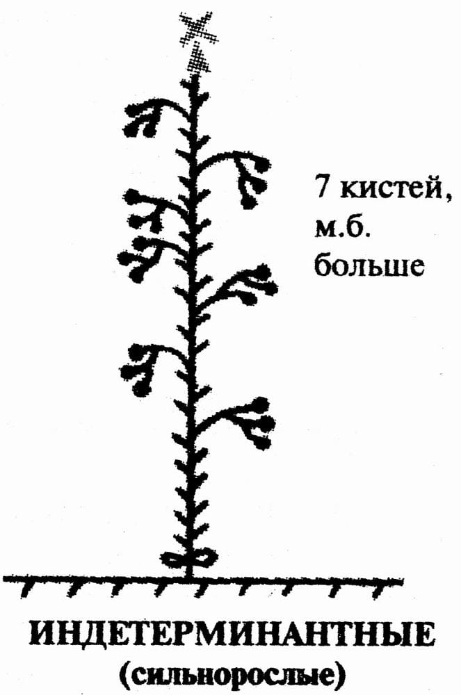 Все сорта и гибриды томатов делятся по типу роста на высокорослые (индетерминантные), среднерослые (полудетерминантные и детерминантные – ограниченная точка роста) и слаборослые (супердетерминантные).