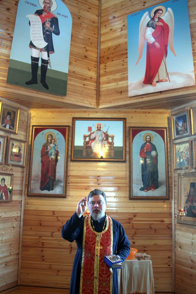 исповедание. Архиепископ Зосима, отец Николай и ещё шесть священников Владикавказской епархии отслужили молитву, совершили чин освящения часовни, и владыка освятил её святою водой изнутри и снаружи.
