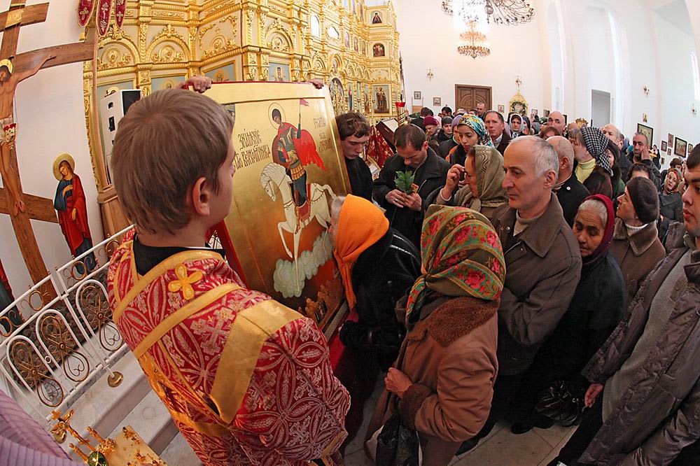 23 ноября, в день колесования и празднования памяти Георгия Победоносца, в кафедральном соборе Святого Георгия икону освятил архиепископ Владикавказский и Махачкалинский Зосима. Икону пронесли вокруг собора крёстным ходом, и после торжественного акта передачи она осталась там как документальное свидетельство о чуде. Владыке Зосиме икону передали со словами: «Передаём её вам в надежде на ваши святительские молитвы о здравии и благополучии Иркутска».