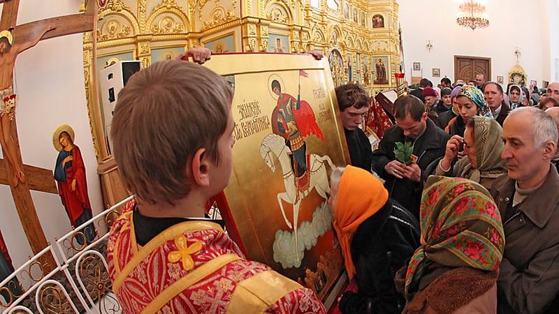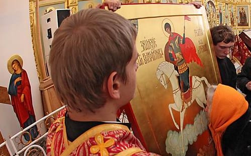 – Я помню, что была мрачная погода, словно собиралась гроза, – вспоминает отец Николай. – И на небе стояли тяжёлые облака, такого свинцово-серого цвета. И тут облака расступились вокруг солнца и сложились в отчётливую фигуру Георгия Победоносца. Хотя он был без копья и не было змея, как в канонических изображениях, я ни секунды не сомневался, кто нам был явлен: на месте лица у фигуры было солнце, а в тропаре Георгий Победоносец описывается именно как солнцеподобный святой.