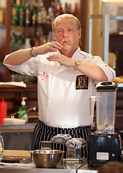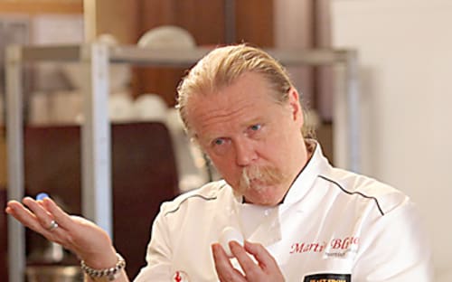 В ресторане листвянкинского отеля «Маяк» Мартин Блунос за сутки дал несколько мастер-классов для поваров, пресс-конференцию для журналистов и попробовал почти все блюда сибирской кухни, но на его лице не появилось ни тени усталости – чувствуется, что знаменитый на всю Британию ведущий популярных кулинарных шоу привык к жизни шоумена. Его лёгкая и добрая манера проведения мастер-класса покорила и шеф-поваров, и простых смертных – журналистов, которым разрешили одним глазком посмотреть на священнодействие Блуноса и попытаться научиться готовить карикатурный десерт. Блюдо выглядит как обыкновенное варённое всмятку яйцо с тостами.