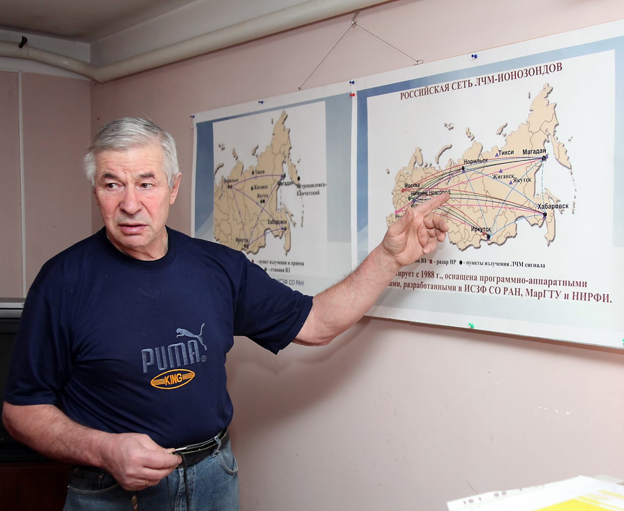 – Изучаем реакцию ионосферы на наши же сигналы. Мы же излучаем, мы же и принимаем. Один из сигналов излучается в Торах, второй – в Усолье-Сибирском, третий принимаем с Кипра, в этом случае используем даже натовский передатчик в своих целях. Сигналы передаются из района Санкт-Петербурга. Периодически включаются Норильск, Хабаровск, Магадан. А есть ещё и общероссийская сеть. Тут с нами в кооперацию входят