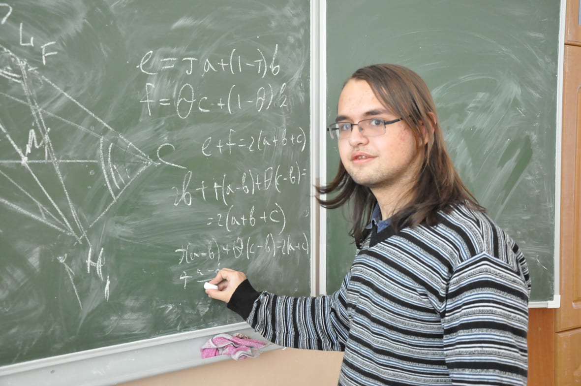 «Такого уровня, если под уровнем понимать способность школьника при определённой подготовке получить диплом всероссийской предметной олимпиады, ребят было всего несколько», – подчёркивает Николай Штыков, который занимается подготовкой Саши уже пять лет. Во многом благодаря его наставничеству Александр стал единственным семиклассником, принявшим участие во Всероссийской олимпиаде школьников по математике. Причём состязался он с девятиклассниками: по правилам на региональный и заключительный этапы «России» допускают только их и тех, кто учится в девятых, десятых и одиннадцатых классах. «У меня было второе место на областной олимпиаде, потом получил диплом третьей степени на зональной, а на всероссийской я провалился, что и неудивительно», – вспоминает он сам.