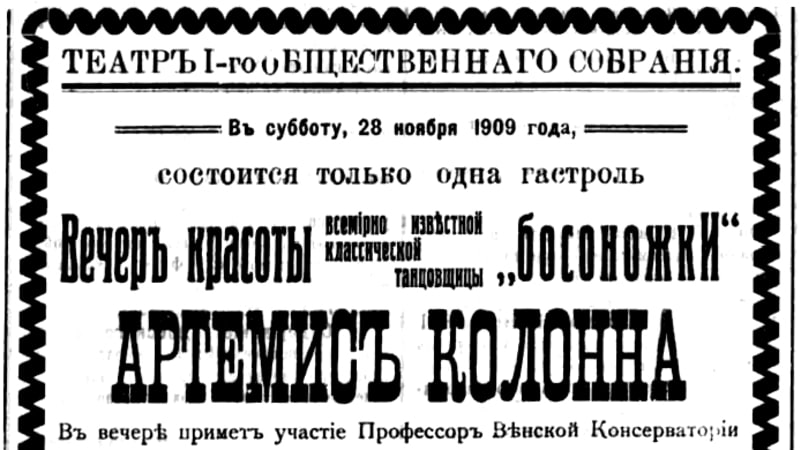 26 сентября 1909 года в городском театре шла опера «Борис Годунов». Перед самым выходом массовки на сцену выяснилось, что не хватает лаптей. Зато боярских сапог оказалось в избытке, и «артисты» с окраин, подрабатывавшие статистами, уже примерились к ним хозяйственным взглядом. Но «бояре» так цыкнули, что пришлось выскочить на сцену босиком. Зрители изумлённо переглянулись, а в ложе бенуара одна дама даже шепнула супругу: «Видно, в древности на Руси круглый год босиком ходили».