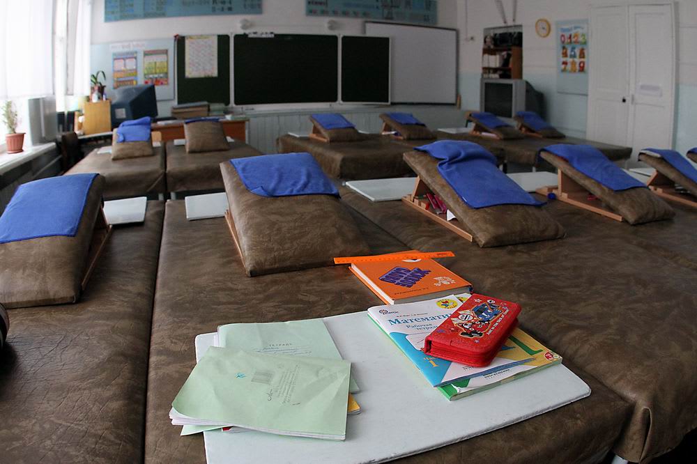 Специализация интерната – дети с нарушениями опорно-двигательного аппарата, в основном это сколиоз разной степени тяжести. Обучение с первого по девятый класс – потом позвоночник окончательно костенеет и лечение теряет эффективность. Кроме предметов, которые требуют непременного вертикального положения (химия, черчение), все уроки учащиеся проводят в лежачем состоянии, «на пузе». Для разгрузки позвоночника вместо традиционных парт применяются столы, похожие на высокие кушетки с регулируемым взъёмом для верхней части тела и находящимся под ним полем для письма и чтения.