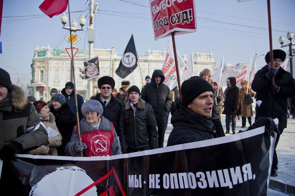 Постепенно стало ясно, кто собрался на акцию протеста: представители запрещённой НБП развернули огромную растяжку в цветах имперского флага, КПРФ, анархисты, в толпе замелькали флаги «Солидарности», можно было заметить «яблочников» в зелёных куртках. К «Гражданскому Иркутску» присоединилось «Общественное объединение избирателей».