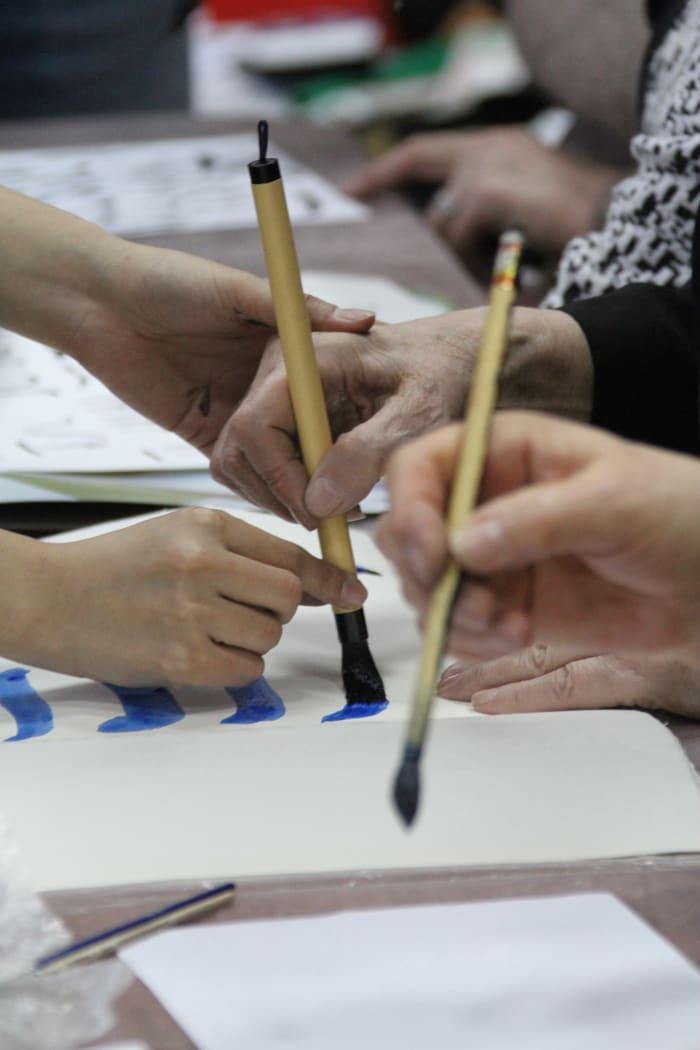 иероглифу предназначено, рассчитывается длина черты… Всё это было интересно, но ещё интереснее держать кисточку самому, выводя своё «счастье».