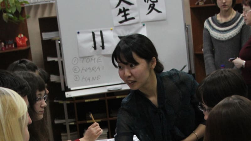 – Держать правильно кисти научиться очень сложно, поэтому сегодня как вам удобно, так и пишите, – разрешила добрая госпожа Марико Койдэ.