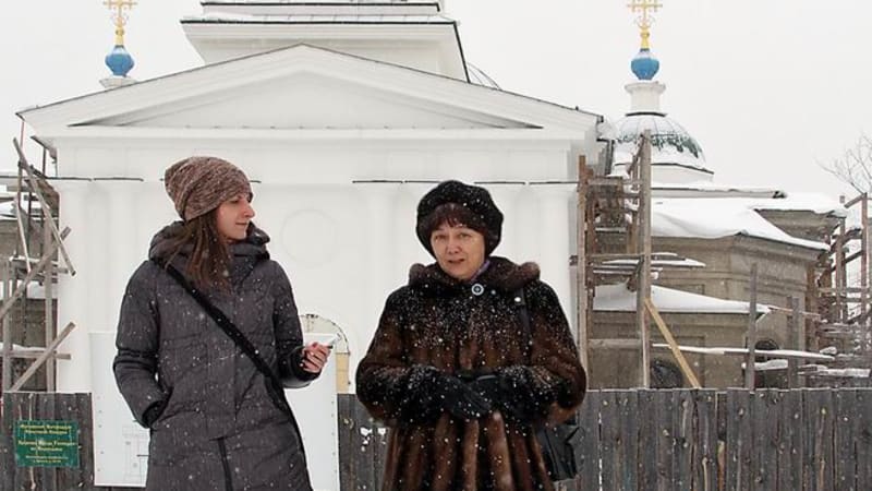 С героиней сегодняшних прогулок мы встречаемся возле её дома на улице Декабрьских событий и под плавным февральским снегом двигаемся в сторону первого пункта нашего маршрута – Входо-Иерусалимской церкви. О себе Ирина Калинина говорит скромно: «Я исследователь».