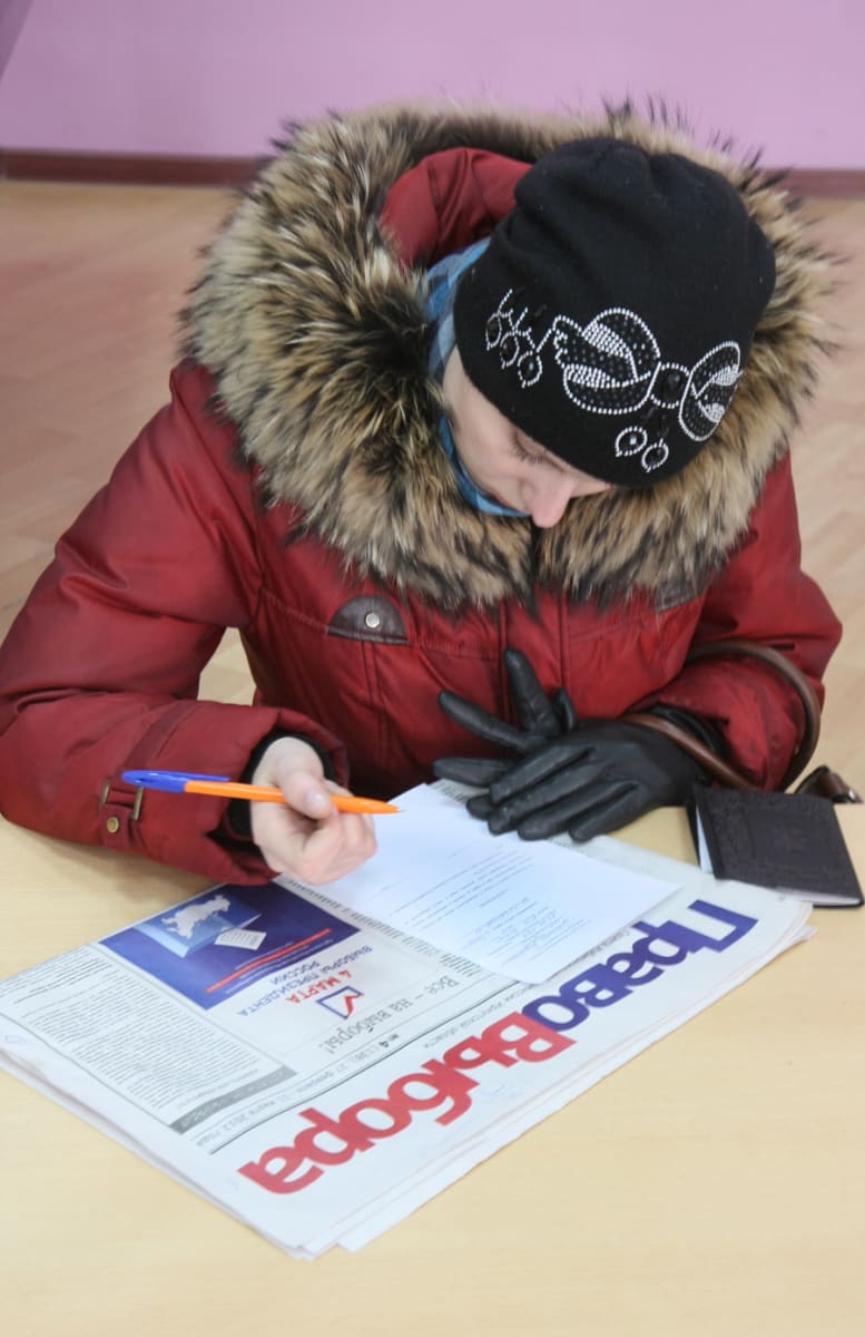 – Давайте уже голосовать, электричка уйдёт! – за пару минут до восьми утра просила девушка с парой лыж наперевес, но избирательный участок № 789 открылся точно в 8:00. К моменту, когда председатель участковой избирательной комиссии Марина Никифорова торжественно объявила о начале выборов президента, у прохода в школьный холл уже выстроились в очередь несколько первых избирателей (так было и на двух других наших участках, явка в Иркутске превысила 54%).