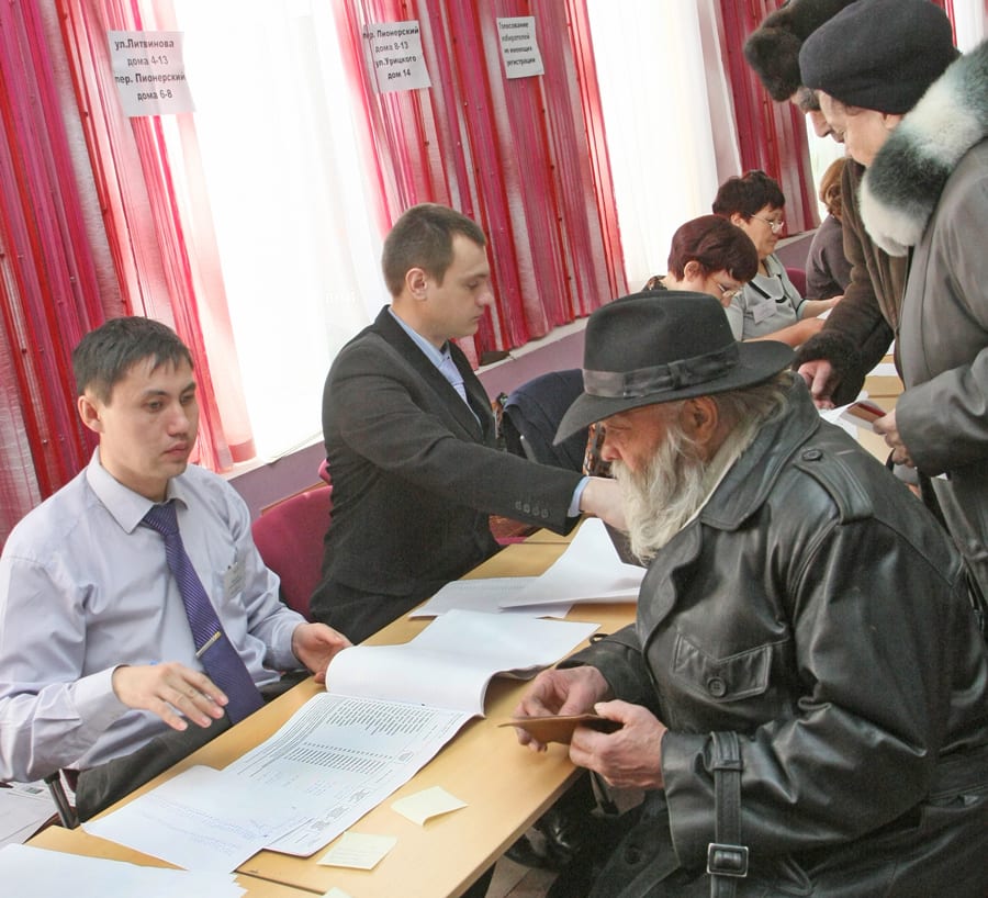 Избирателей становится всё больше и больше – к часу дня уже 400 человек. Пожилая женщина, сбрасывая бюллетень в урну, приговаривает: «Входи-входи-входи». «Желание загадали?» – мрачновато спрашивает мужчина, стоящий рядом с ней. Кто-то обсуждает возраст кандидатов, кто-то – их благосостояние. Появляются и те, у кого в паспорте значится временная регистрация, они не очень радостно встречают известие о том, что им необходимо голосовать на участке в центре города. «Да в гробу я видал ехать!» – в сердцах бросает мужчина лет сорока.