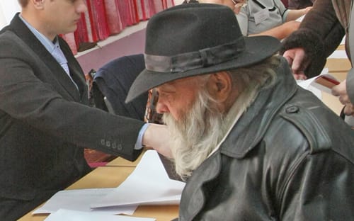 Находятся и те, кто решил своими методами бороться с фальсификациями, – один избиратель ставит подпись на бюллетене, доверительно сообщая комиссии: «Я всегда так делаю, чтобы точно не подделали». Ещё один, одетый в камуфляж, приговаривает, рассматривая бланк перед кабинкой: «Я не хочу за того, за кого надо, я хочу за того, за кого я хочу». И, сбросив бюллетень в урну, обращается ко всем присутствующим: «С новым царём вас, ребята!» Какая-то пожилая женщина с тростью предлагает поступить с некоторыми кандидатами радикально. «Этого и этого на пенсию!» – указывает она на портреты Владимира Жириновского и Геннадия Зюганова. И тут же тычет пальцем в Прохорова: «А этого – к Собчак в «Дом-2»!»