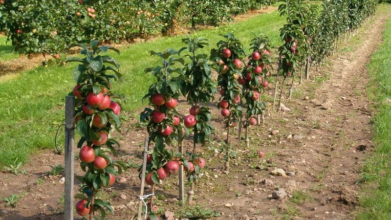 В Англии, Голландии, России, Югославии и других странах стали появляться небольшие сады из колонновидных сортов яблони, поражающие воображение необычно высокой продуктивностью красивых крупных яблок десертного типа. Ряды деревьев колонновидного типа очень узкие, всего лишь около 40 см, а высота обычно не более 2,5 м. Cады, состоящие из колонновидных яблонь, дают яблок с гектара в 5-6 раз больше, чем антоновка обыкновенная или Голден Делишес, а урожайность новых колонн заметно выше прежних.