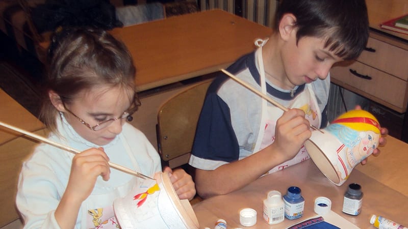 Попасть в сказку ребятам из специализированной коррекционной школы-интерната № 4 было непросто. На пути их поджидало много испытаний, которые не одолеть без помощи взрослых. Первое из них – творческий конкурс. Это обязательное и постоянное условие, меняются только задания. Например, пару лет назад нужно было сделать тряпичную куклу, а в этом году – расписать матрёшку в национальном костюме своего региона или республики. Чита сделала матрёшку в бурятском костюме, а Армения, соответственно, в армянском. Впрочем, с матрёшкой вышла отдельная история. Ребятам пришлось делать её два года подряд. Иркутяне сделали сразу две матрёшки, у них год шёл за два.