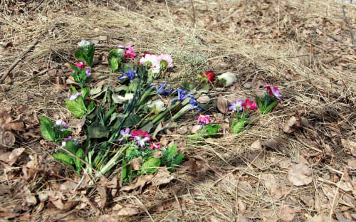 На чужих безымянных могилах появились свежие цветы: на место гибели молодого человека приезжали его родные и друзья.