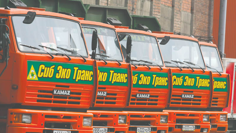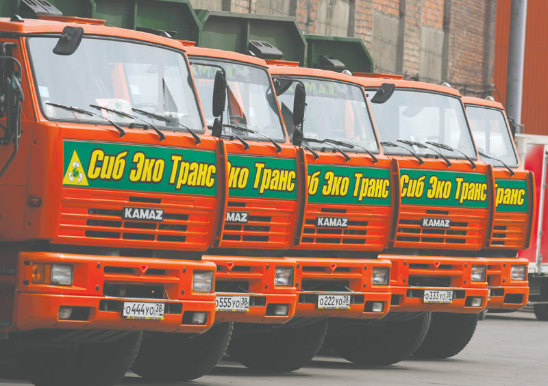 Напротив технического входа в торгово-развлекательный центр «Джем-Молл» выстроились пять оранжевых «КамАЗов» с зелёными слонами и символикой «СибЭкоТранс» на кузове. Дополнительная спецтехника приобретена для расширения деятельности предприятия, которое занимается сбором, транспортировкой и утилизацией отходов в Иркутске и Иркутском районе, рассказывает генеральный директор группы Игорь Алексеев. «Это российская техника класса «Евро-3» – это означает, что они наносят меньший вред экологии, в частности, новая гидросистема исключает течь масла, выхлопы минимальные», – подчёркивает глава компании, добавляя, что, поскольку техника новая, коэффициент уплотнения мусора выше, чем у предыдущих моделей. Соответственно, машинам требуется меньшее количество ходок для вывоза того же количества отходов.