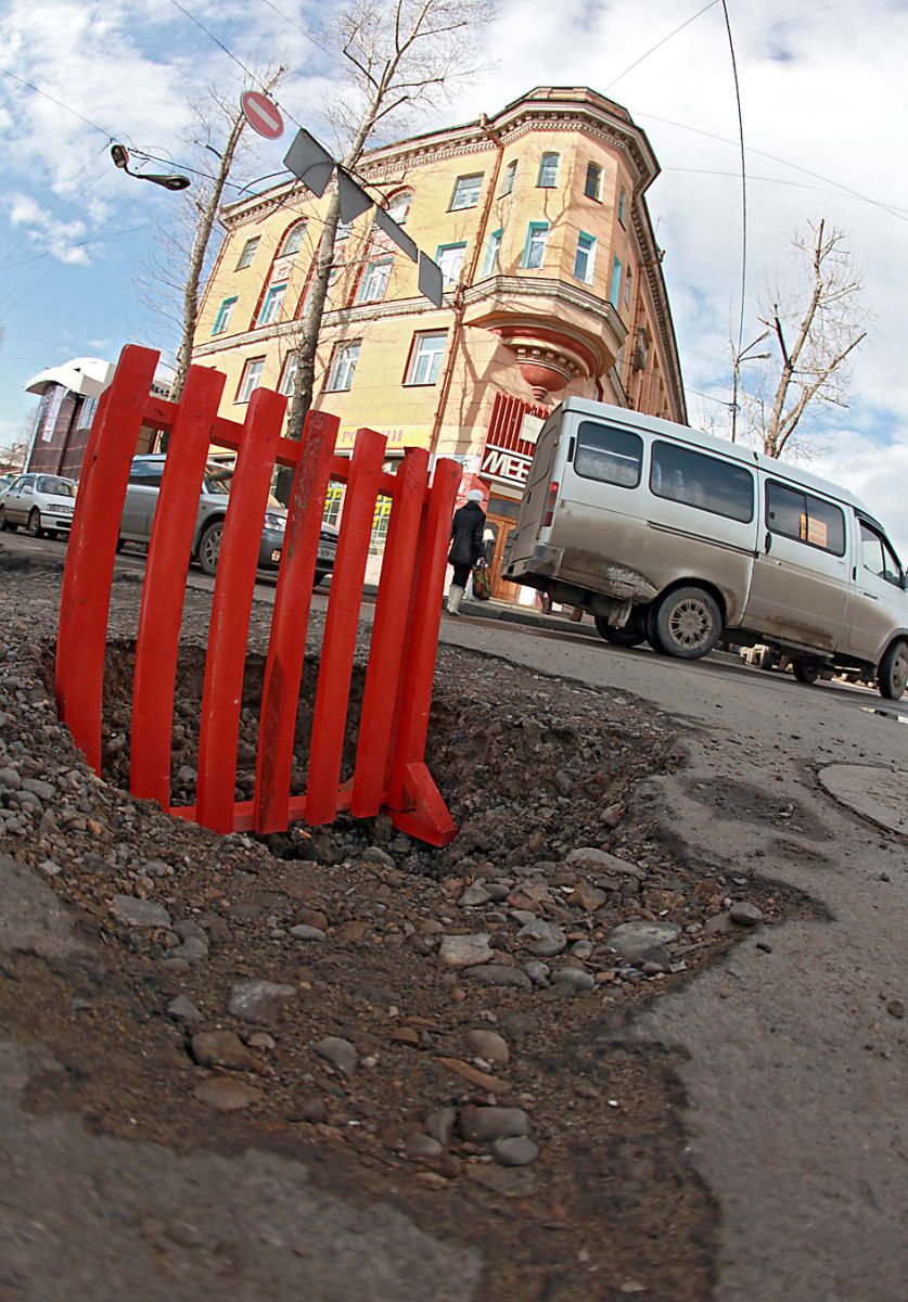 Каждая весна в Иркутск приносит не только долгожданное тепло, но и совсем нежеланные проблемы. Не успел город прийти в себя от рек и ручьёв, как настала пора новой напасти. Дороги областного центра буквально проваливаются под землю. Кажется, вместе со снегом сошёл и асфальт. Как признаются иркутские автомобилисты, дорог в таком плачевном состоянии они не видели давно. Выглядят они так, будто не зима, а война закончилась, написал один иркутский интернет-пользователь.